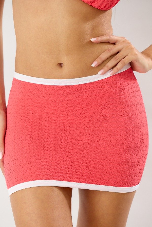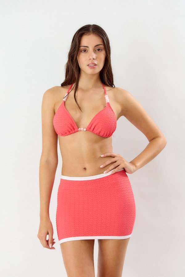 Accesorio confeccionado en tricot texturado, pensado para complementar la línea de bikinis y enterizas EZRA.